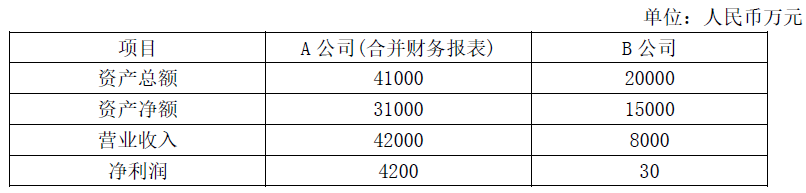 第一项计划,拟将其全资子公司B公司80%的股权以人民币12500万元的价格出售给A公司董事陈二控制的某集团。交易完成后,B公司将成为该集团的控股子公司。A公司与B公司交易基准日(期间)经审计的财务数据如下: