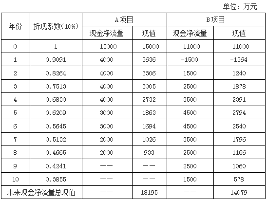 A项目净现值=18195-15000=3195(万元)