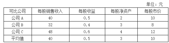c.市销率模型:200000×10/40=50000(万元)=5(亿元)