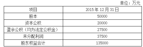2015年年末,经过多年快速扩张,荣诚酒店当年实现净利润2.5亿元,创历年的业绩新高,预计未来仍将保持较快增长。2015年12月31日,荣诚酒店利润分配前的股东权益明细如下: