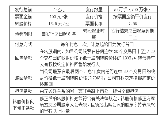 2014年6月,为了筹措扩张并购资金,公司拟公开发行可转换公司债券(以下简称“可转债”)来筹集资金。根据可转债的发行条件,经测算后本次发行规模确定为7亿元,初步发行方案如下表:
