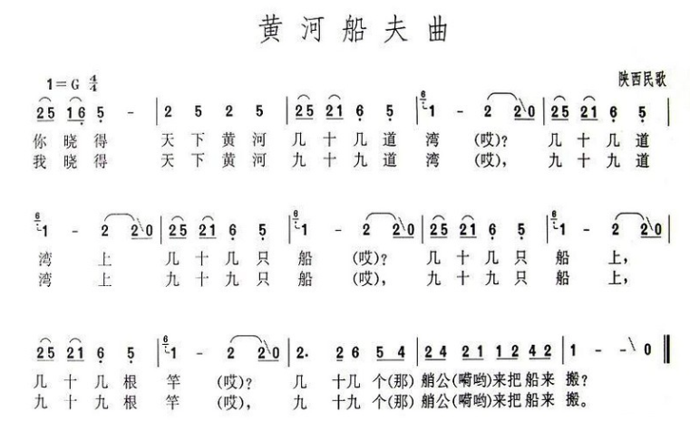 【情感、态度、价值观】通过欣赏和学习歌曲,感受音乐中所表达的黄河船夫勤劳勇敢、不畏艰难的精神。