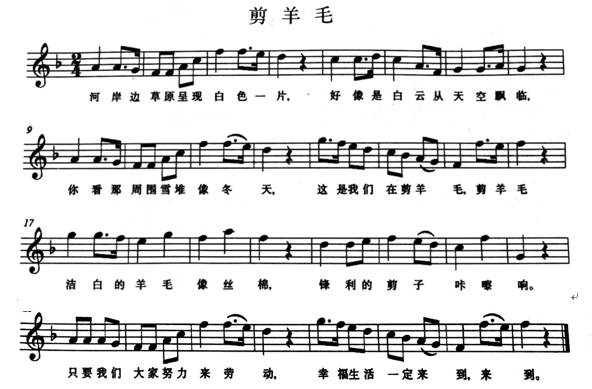 澳大利亚民歌《剪羊毛》为F大调再现的两段体结构。